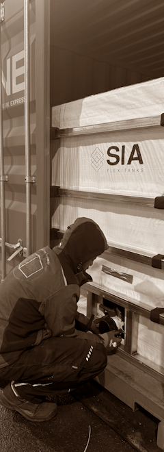 Professional installation of flexitanks in sea containers